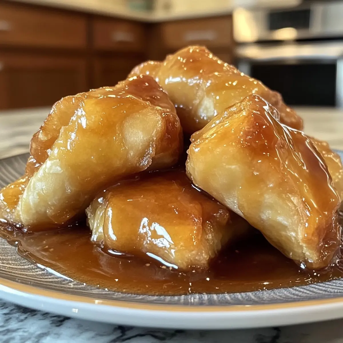 Deliciously Gooey: Each dumpling bakes to golden perfection, with a syrupy caramel sauce that adds a mouthwatering finish.