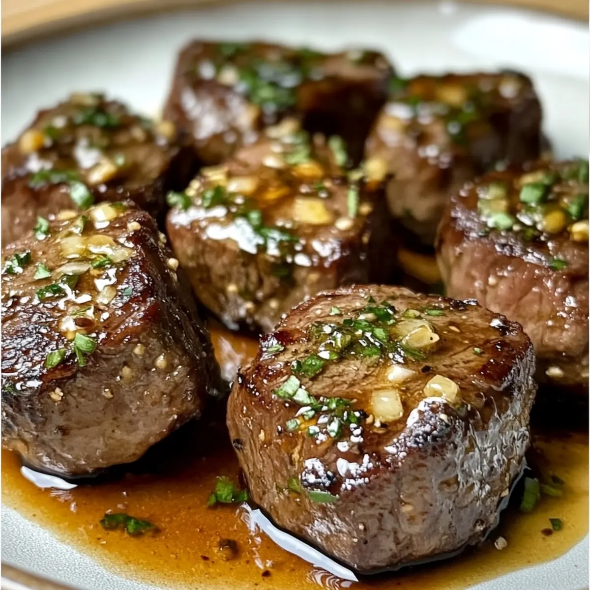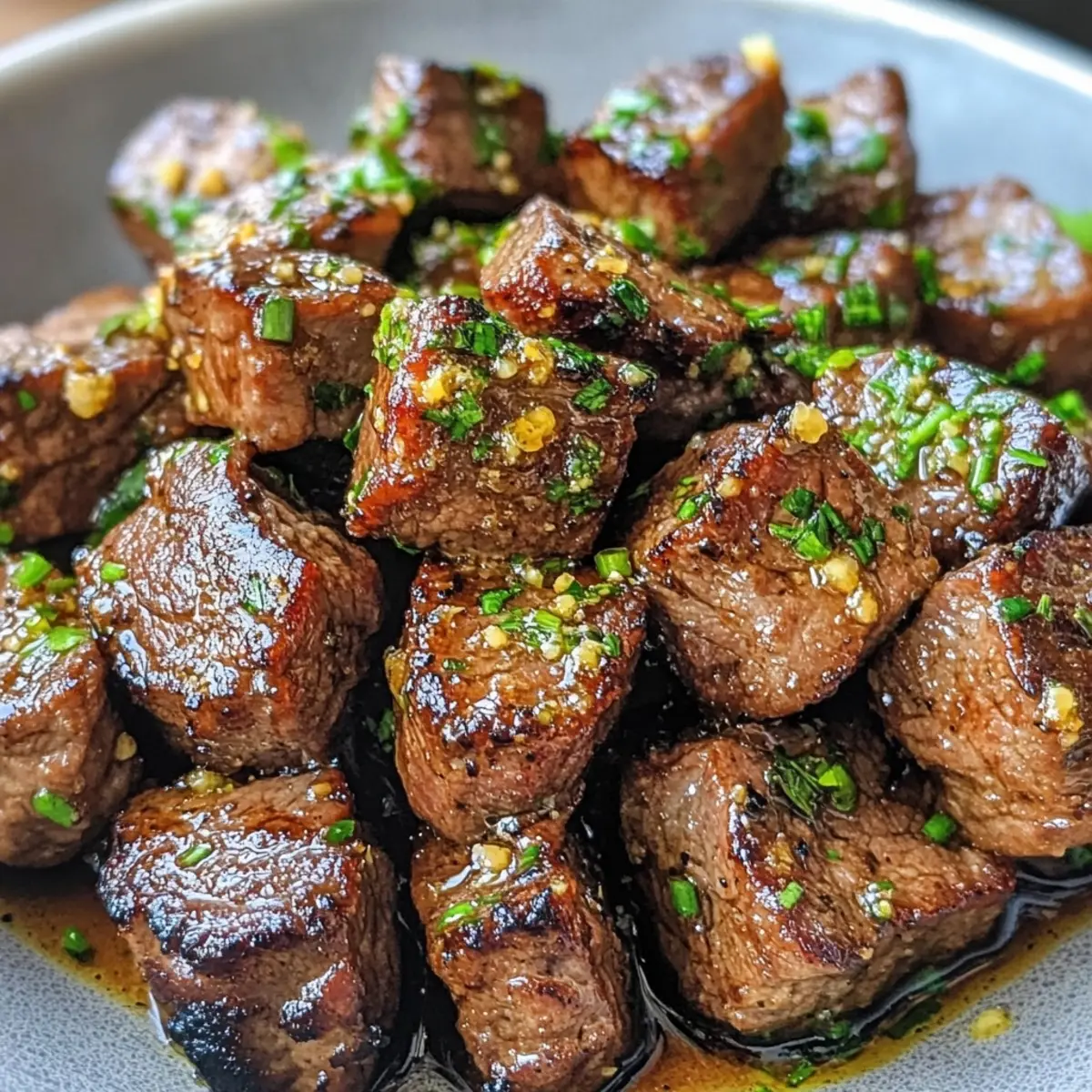 - Return the seared steak bites back to the skillet, tossing gently to coat in the garlic butter sauce. Heat through for an additional minute.