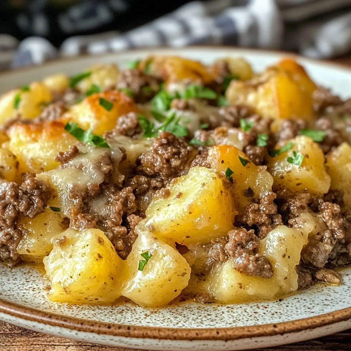 Savory and satisfying: The rich flavors of ground beef paired with tender potatoes create a dish that’s deeply comforting and nourishing.
