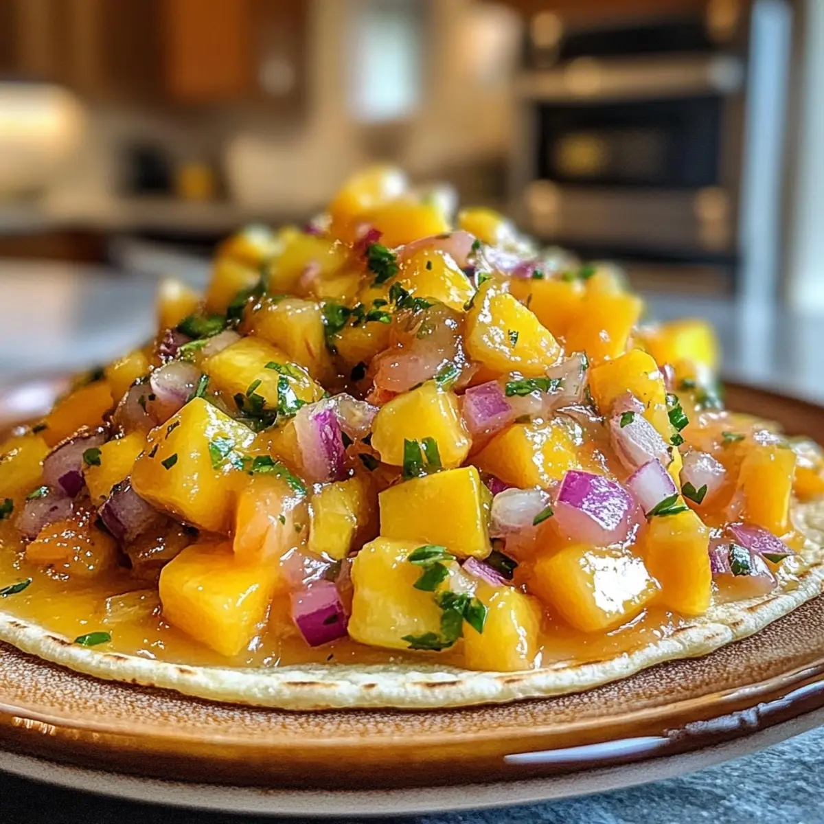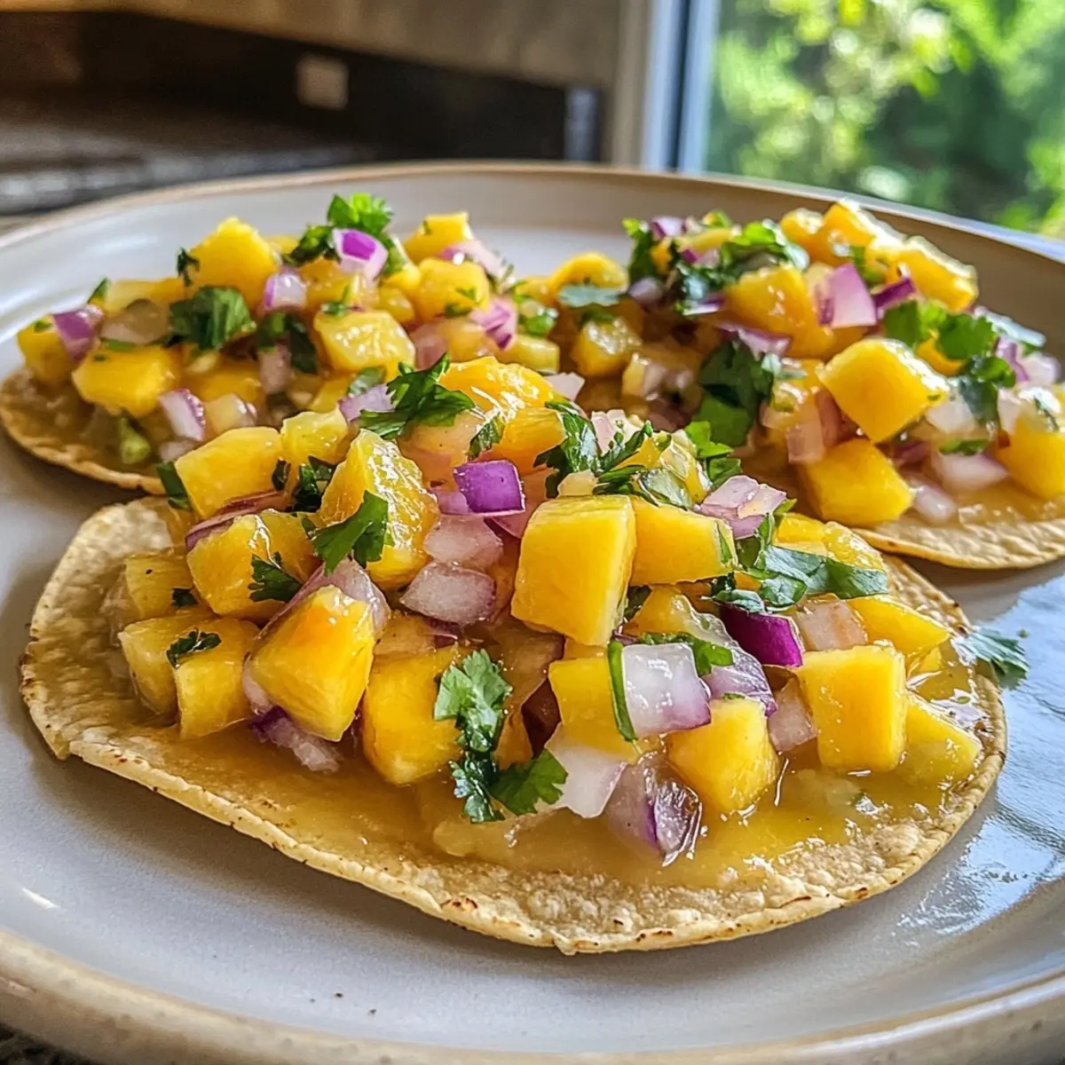Imagine the sweet, juicy burst of ripe mango mingling with the fiery kick of habaneros, all nestled on a crispy tostada. The freshness of cilantro and the zesty zing of lime juice balance beautifully, creating an explosion of flavor that is sure to impress. This dish is simple enough for weeknight dinners yet fancy enough for your next soirée, making it a versatile crowd-pleaser.