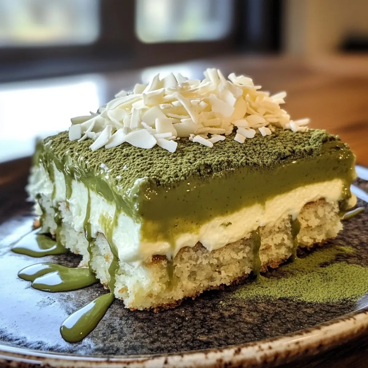 Indulgent Matcha Tiramisu with White Chocolate Shavings