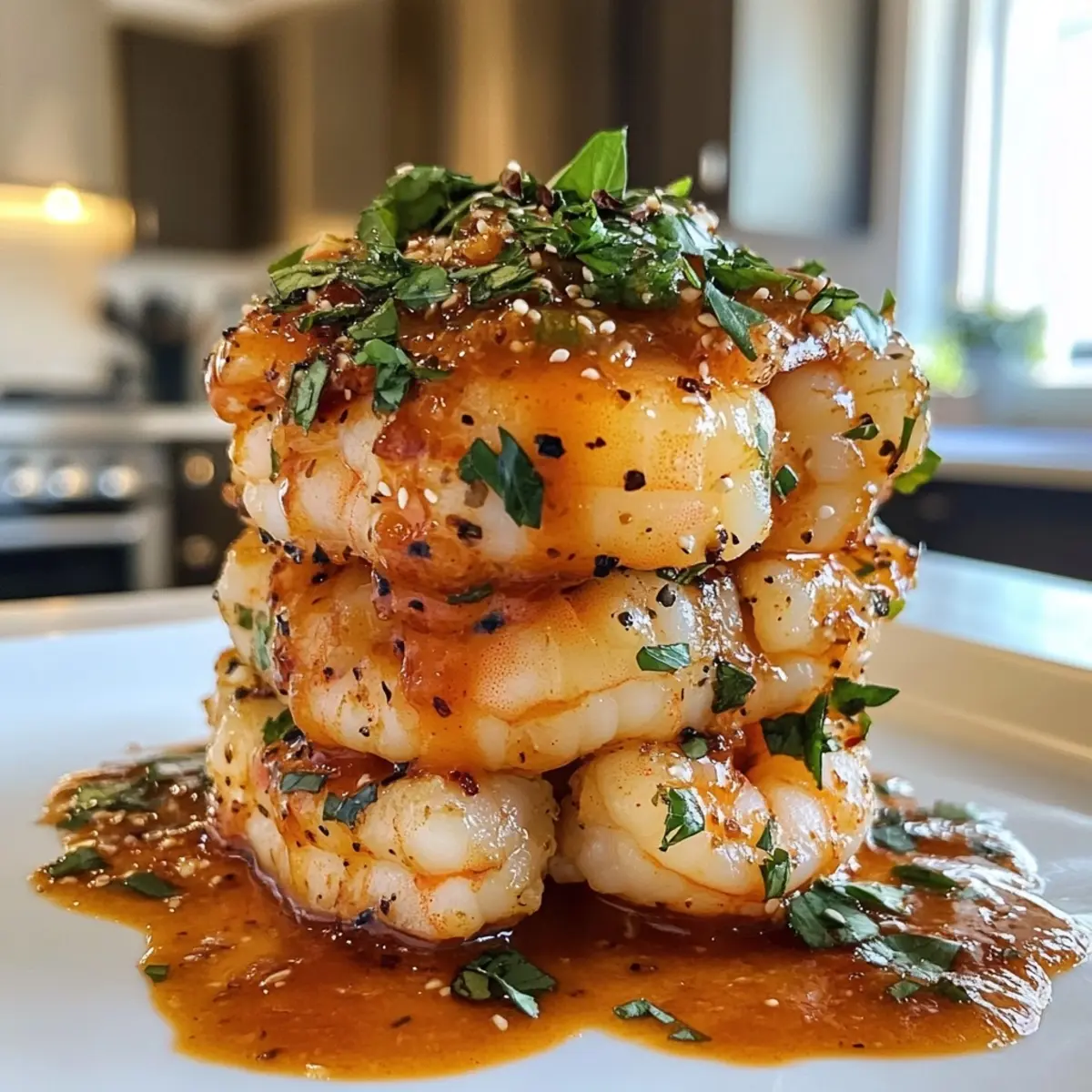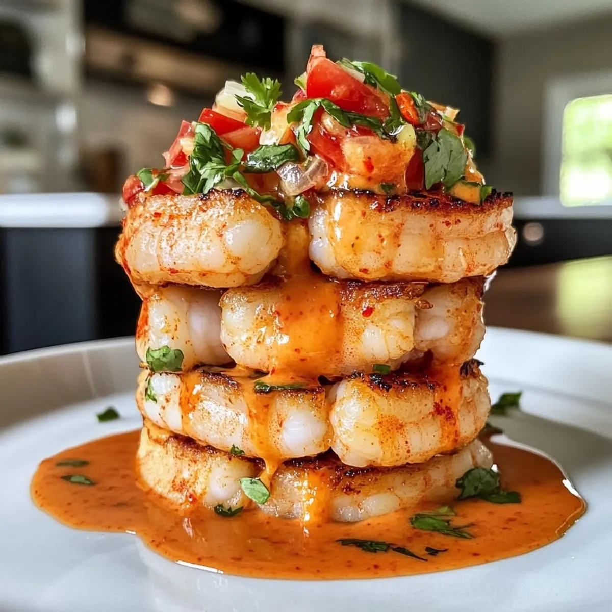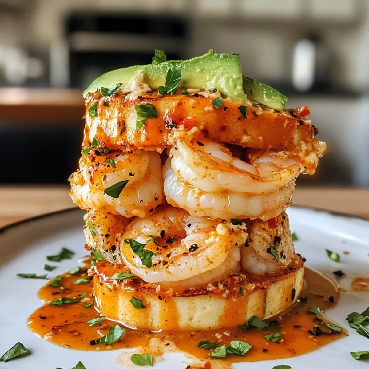 - Drizzle the spicy dressing generously over the shrimp stacks, enhancing the flavors and tying everything together delightfully.