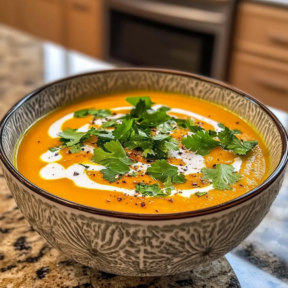 - Serve warm, garnished with a swirl of coconut milk and fresh cilantro if desired.