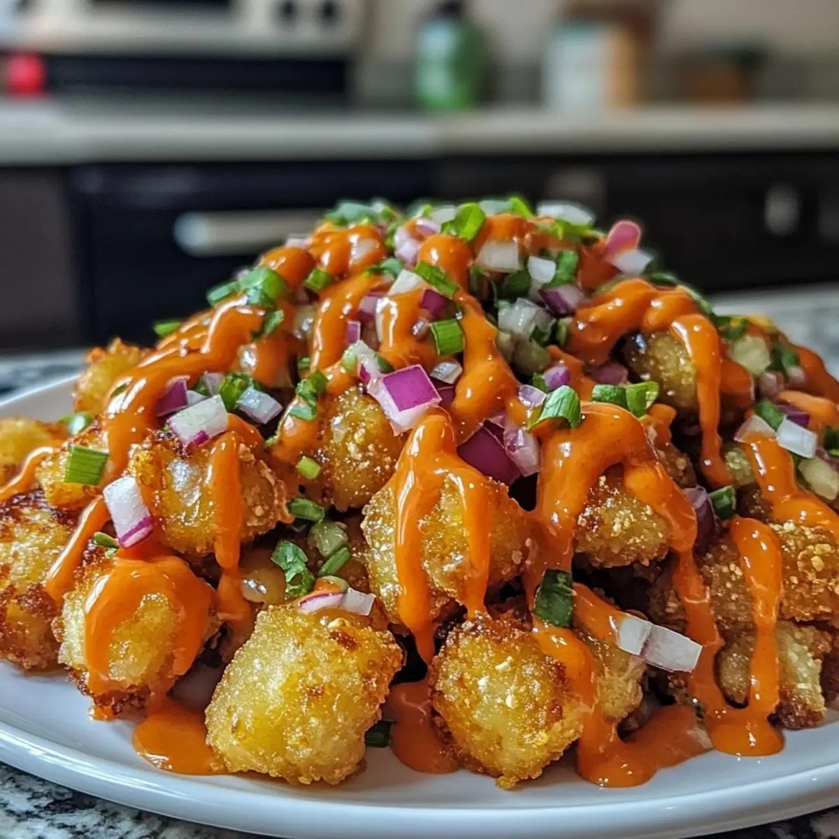 - Crispy Onions: Add crispy fried onions as a topping for an added crunch that balances the creamy queso and soft tots beautifully.